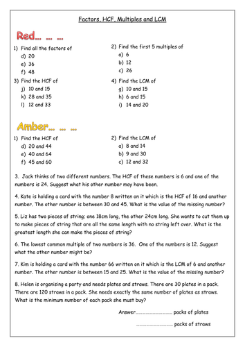 Highest Common Factor Lowest Common Multiple Worksheet Tes